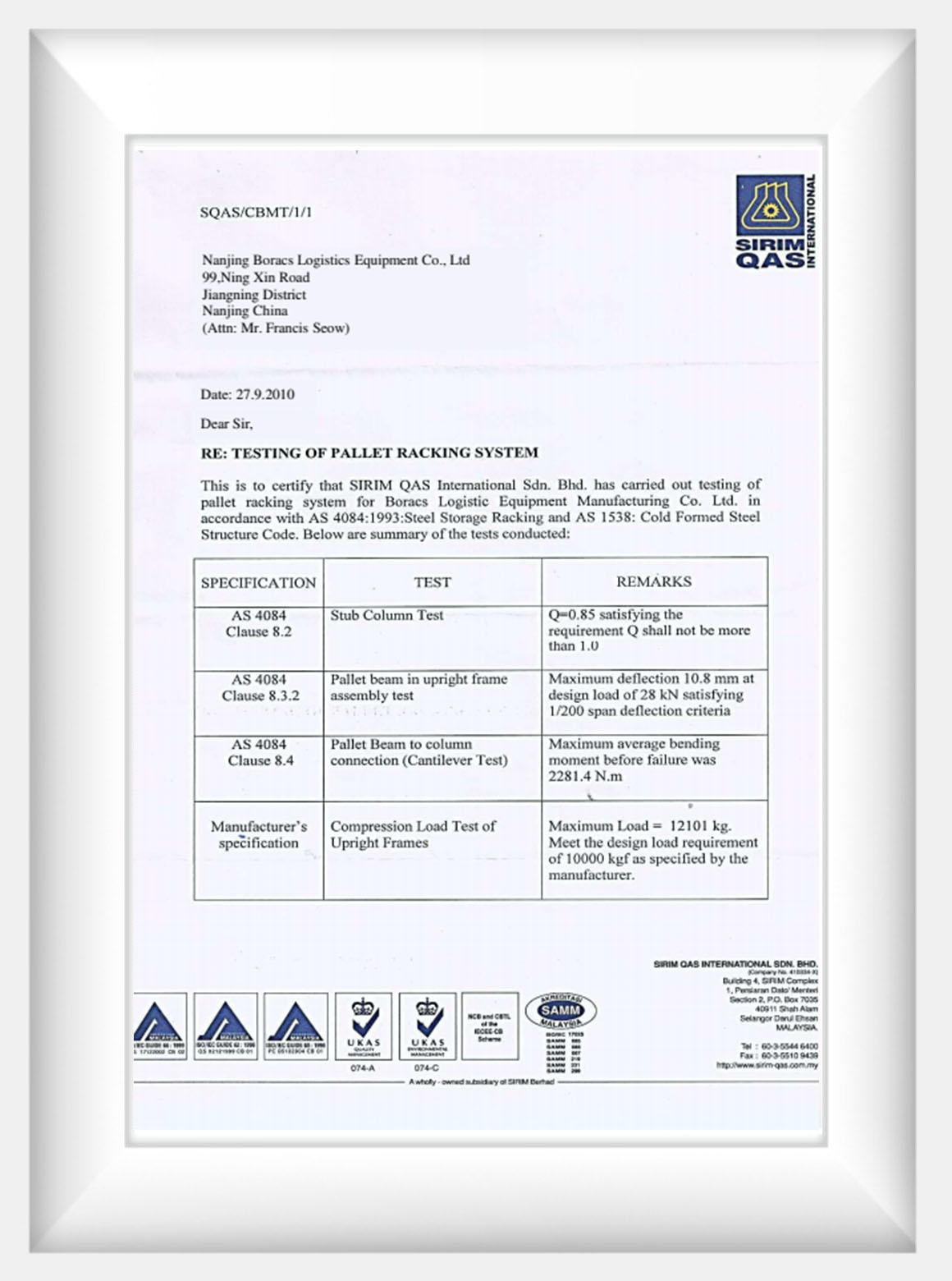 | Accessories | 100% 8.8Gbolt & nut | Loading capacity | 800kg-4000kg/level |